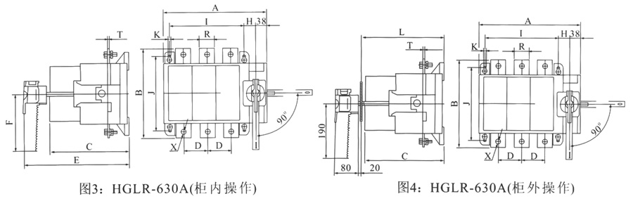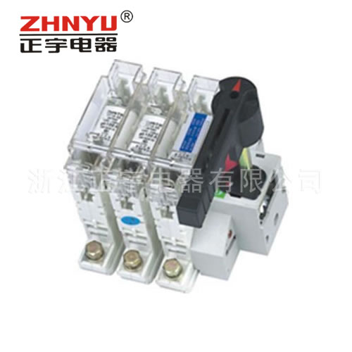 适用范围 HGLR系列隔离开关熔断器组(以下简称开关),适用于交流50Hz、额定电压至660V、额定电流至630A的工企业配电网中:广泛用于具有高短路电流的配电电路和电动机电路中,用作手动不频繁接通与分断电路或电气隔离之用;可带负荷操作,并作电路短路保护之用。 开关造型美观、新颖简洁,并符合IEC60947-3、GBl4048.3标准。 型号及含义 ![]() 开关结构特征 1、开关采用玻璃纤维增强不饱和聚脂模塑料及手动操作手柄,具有很高的介电性能、防护能力及可靠的操作安全性。 2、开关采用弹簧蓄能、瞬时释放的加速关合机构及同时接通与分断并联多断点的触头结构,极大的提高了产品的电气性能与机械性能。 3、开关160A、250A、400A采用模块式设计,630A采用整体式结构,可确保带负载操作及通断可靠的过电流与短路安全保护。 4、开关有2极、3极、4极(3极+可通断中性极)之分。 5、手柄可直接装在开关上操作(简称柜内操作),也可通过加长轴在配电柜门外操作(简称柜外操作)。 6、可根据需要提供常开常闭辅助触点及板后接线方式。 主要技术参数