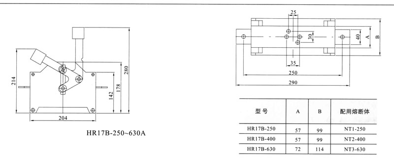 HR17B-160-630A挂接式外形与安装尺寸