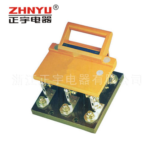 适用范围 HD11FA系列隔离器,HD11FA防误型隔离器适用于额定绝缘电压660V,额定工作电压380V,额定工作电流200A至1600A,主要用于低压成套设备中,在无负荷的情况下,用作分合电路,隔离电源之用,本隔离器技术性能符合IEC60947-3、GB14048.3标准。 结构特性 200、400A隔离器为单刀片,触头为两接触片铆合,合闸时靠触头的片状弹簧夹紧、以保证触头压力:600、1000、1600A为双刀片,外侧有片状弹簧压紧保证可靠地接触压力,刀片转动部分由弹性球面垫圈压紧。本系列隔离器操作手柄,采用盖板式结构,刀片直接固定在绝缘盖板上,能够防止操作人员在操作过程中触及隔离器的带电部分。在隔离器安装板上装有LX19B行程开关,由盖板断开,闭合位置控制行程开关触头状态,在结构上保证行程开关常闭触头先于触头而断开,后于主触头而闭合。 本系列隔离器还具有锁扣机构,可通过锁扣机构进行锁定,使隔离器不能断开操作,并能承受短时冲击电流可产生的误动作。若进行断开操作时,需通过解锁机构进行解锁,解锁后方可进行断开操作。 型号及含义 ![]() 主要技术参数